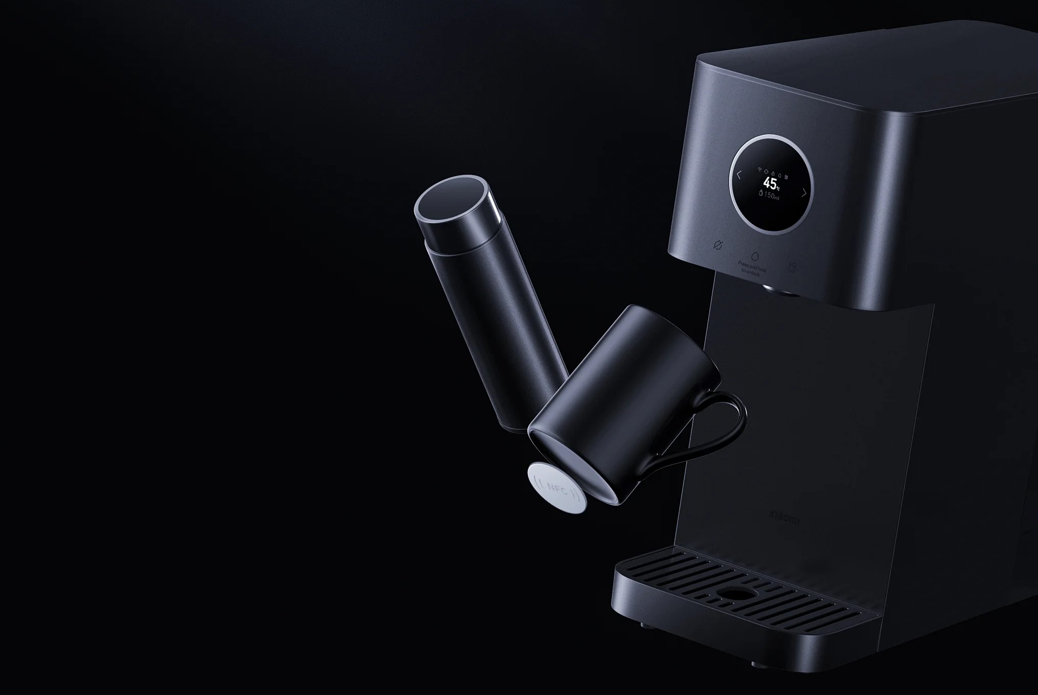 Настройте свой эксклюзивный питьевой профиль, связав прилагаемую изолированную бутылку для воды Xiaomi NFC с приложением Mi Home/Xiaomi Home. Вода сразу же подается, когда вы помещаете бутылку в поддон для сбора капель.